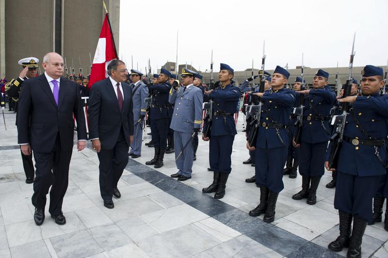 Keywords: 121006-D-BW835-006 (8071031532).jpg U S Secretary of Defense Leon E Panetta right and Peruvian Minister of Defense Pedro Cateriano Bellido inspect troops at a ceremony in Lima Peru Oct 6 2012 Panetta visited South America on a four-day trip to strengthen defense relationships with Western Hemisphere counterparts DoD photo by Erin A Kirk-Cuomo/Released https //www flickr com/photos/39955793 N07/8071031532/ 121006-D-BW835-006 2012-10-06 10 56 https //www flickr com/people/39955793 N07 U S Department of Defense Current Photos PD-USGov U S Department of Defense Current Photos https //flickr com/photos/39955793 N07/8071031532 2016-09-03 09 55 23 United States Government Work Lima United States Department of Defense |