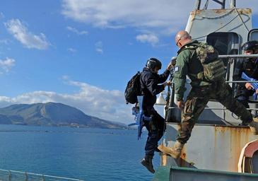| Keywords: 121211-N-XZ912-007 (8270653008).jpg U S Coast Guard Cmdr Adam Chamie left and Greek navy Ensign Alexander Tsaltas right conduct a boarding exercise aboard the former Greek navy training ship Aris A-74 at the NATO Maritime Interdiction Operational Training Center in Souda Bay Greece Dec 11 2012 during Eurasia Partnership Capstone EPC 2012 Annually hosted by the U S Navy EPC aimed to increase maritime safety and security through workshops and seminars Nations participating in EPC included the United States Azerbaijan Bulgaria Georgia Greece Romania and Ukraine DoD photo by Mass Communication Specialist 1st Class Christopher B Stoltz U S Navy/Released https //www flickr com/photos/39955793 N07/8270653008/ 121211-N-XZ912-007 2012-12-11 08 59 https //www flickr com/people/39955793 N07 U S Department of Defense Current Photos PD-USGov U S Department of Defense Current Photos https //flickr com/photos/39955793 N07/8270653008 2016-09-03 09 34 35 United States Government Work Greece United States Department of Defense |