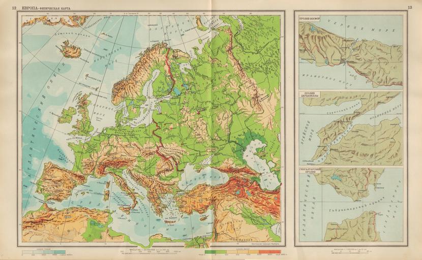 | Keywords: 12-13 Европа. Физическая карта.jpg ru Геог афический атлас для 5-го и 6-го классов с едней школы 1941 Геог афический атлас для 5-го и 6-го классов с едней школы 1941 Главное Уп авление Геодезии и Ка тог афии п и С К СССР Описание Раз аботан Цент альным аучно-Исследовательским Институтом Геодезии Аэ осъемки и Ка тог афии ГУГК п и С К СССР п и участии учителей московских школ Составлен и офо млен аучно-Редакционной Ка тосоставительской Частью Главного Уп авления Геодезии и Ка тог афии п и С К СССР Подписано к печати с 9/I по 3/VI 1941 г Custom license marker 2012 10 06 PD-old Geographical Atlas for the 5-6 grades of secondary school 1941 Uploaded with UploadWizard |