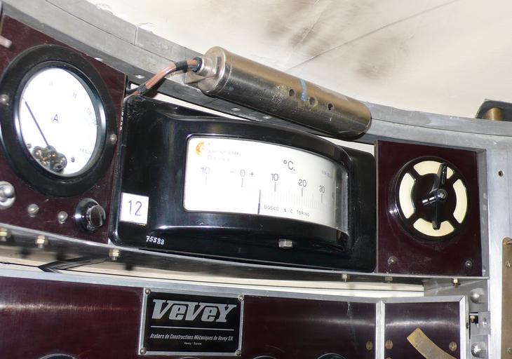 Keywords: 12 Bathyscaph Trieste German Museum Munich.JPG Bathyscaph Trieste German Museum Munich 1 Schalttafel für die Außenbeleuchtung 3 Scheinwerfer Quecksilberdampflampen an der Unterseite des Schwimmkörpers und 2 Glühlampen in Stahlgehäusen am Beobachtungsfenster der Tauchkugel und im Vorzimmer Ateliers de Constructions Mécaniques de Vevey S A Vevey Schweiz 2 Schalttafel zur Betätigung der Ballastschleusen und anderen Einrichtungen Ateliers de Constructions Mécaniques de Vevey S A Vevey Schweiz 3 Schalttafel für die Antriebsmotoren Ateliers de Constructions Mécaniques de Vevey S A Vevey Schweiz 4 Reservematerial 5 Chronometer des Fabrikats wie es auch bei den Ballonflügen in die Stratosphäre 1931 und 1932 von Auguste Piccard benutzt wurde Ateliers de Constructions Mécaniques de Vevey S A Vevey Schweiz 6 Totalisator zur Kontrolle der Ballastabgabe Mit zwei Sekunden-Zählwerken die nur laufen wenn der Strom der zugehörigen Ballastschleuse unterbrochen ist und Ballast abgegeben wird Da der Ballastausfluß jeder Schleuse ziemlich genau 10 kg je Sekunde beträgt kann man sofort erkennen wie viel Ballast verbraucht worden ist Langines Compagnie des Mantres Longines Francillon S A St Imier Schweiz 7 Manometer die zur Ermittlung der Tauchtiefe den Wasserdruck messen Haenni Jegenstorf Schweiz 8 Hochdruckventil 1200 kp/qcm Maschinenfabrik Burckhardt Aktiengesellschaft Basel Schweiz 9 Wasserdichter und explosionsgeschützter Fernsprechapparat für Batteriebetrieb mit einer Buchse im Schwimmkörper so dass nach dem Auftauchen eine Kabelverbindung mit Begleitfahrzeugen hergestellt und so beim Tauchen bis in geringe Tiefen aufrechterhalten werden kann Società Italiana Telecomunicazioni Siemens s p a Milano Italien 10 Automatische Filmkamera Bolex H 16 Reflex Paillard S A Ste Croix Schweiz 11 Photographische Kamera Exakta Ihagee Kamerawerk A G Dresden 12 Anzeigeinstrument des Nickelwiederstandsthermometers zur Messung der Temperatur des Tragebenzins Bosco Co S p a Torino Italien 13 Pendel zur Bestimmung der Trimmlage 14 Zink-Silber-Akkumulatoren zum Betrieb elektrischer Geräte der Ballastschleusen der Haltemagnete der Antriebsmotoren der Ventilatoren der Scheinwerfer Lampen und Innenbeleuchtung 330 Zellen zu je 1 5 Volt Electrona S A Boudry Schweiz 15 Pressluftflaschen zum Ausblasen des Wassers aus Vorzimmer und Einsteigeschacht AGA A G Pratteln-Zürich-Genf 16 Sauerstoff-Flaschen der Belüftungsanlage um den Sauerstoffgehalt der Atemluft in der Tauchkugel zu erneuern AGA A G Pratteln-Zürich-Genf 17 Natronpatronen Aus den Druckflaschen in einem Injektor strömender Sauerstoff saugt Raumluft durch diese drei Patronen Kohlendioxyd wird absorbiert und die gereinigte Luft gelangt gemischt mit Sauerstoff im Kreislauf in die Kabine zurück Drägerwerk Lübeck 18 Schalttafel Ateliers de Constructions Mécaniques de Vevey S A Vevey Schweiz 19 Unterwassertelefon nach Russel Lewis Laboratorium für Unterwasserschall New London Connecticut USA mit dem auch während des Tauchens eine Sprech- oder Signalverbindung mit dem Begleitschiff aufrechterhalten werden kann Die beim Sprechen auf das Mikrofon auftreffenden Schallwellen werden im Bereich von 300 bis 3000 Hertz in elektrische Schwingungen und nach Verstärkung zur à bertragung im Wasser in Unterschallschwingungen von 8387 bis 11087 Hertz umgewandelt Einseitenband-Modulation mit unterdrücktem Träger Beim Empfang findet der umgekehrte Vorgang statt 20 Echolot 21 Log zum messen der Vertikalgeschwindigkeit 22 Innenbeleuchtung mit 6 kleinen Glühlampen zur Beobachtung der Instrumente Sie beleuchten die weiß gestrichene Decke der Tauchkugel und sind gegen die Besatzung abgeschirmt um Blendwirkung zu vermeiden 23 Traggerüste für die Geräteausstattung Verformungen der Kugel durch Temperaturänderungen werden von Schraubfedern aufgenommen die in Bohrungen am oberen Ende der Stangen sitzen und einen Messingkolben gegen die Kugelwand drücken Ateliers de Constructions Mécaniques de Vevey S A Vevey Schweiz 24 Sitze 25 Fußboden der den Keller abdeckt Im Keller werden Alkalipatronen zur Erneuerung der Atemluft Druckgasflaschen zum Ausblasen des Einsteigschachtes nach einer Tauchfahrt und anderes Reservematerial aufbewahrt 26 Tauchkugel Fried Krupp Essen 27 Einsteigeluke 28 Hauptbeobachtungsfenster 29 Tonbandgerät Kudelski Enregistreur autonomes Nagra Paudex-Lausanne own Reinraum 2010-09-19 Trieste submarine 1953 |