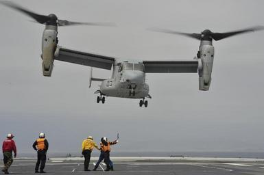 | Keywords: 130614-N-BU440-542.jpg en 130614-N-BU440-473 PACIFIC OCEAN June 14 2013 U S Marines inspect an MV-22 Osprey tilt-rotor aircraft after landing on the Japan Maritime Self-Defense Force helicopter destroyer JS Hyūga DDH 181 during amphibious exercise Dawn Blitz Dawn Blitz is a scenario-driven exercise led by the U S 3rd Fleet and 1 Marine Expeditionary Force that will test participants in the planning and execution of amphibious operations through a series of live training events U S Navy photo by Mass Communication Specialist Seaman Molly A Evans/Released 2013-06-14 14 20 35 http //www navy mil/view_image asp id 153327 U S Navy Official U S Navy photo by Mass Communication Specialist Seaman Molly A Evans/Release PD-USGov Uploaded with UploadWizard JS Hyūga DDH-181 z Dawn Blitz 2013 MV-22B Osprey USMC in hovering |