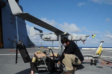Keywords: atlantic ocean atlanticocean outdoor 130716-N-KA543-163 ATLANTIC OCEAN (July 16, 2013) Small tactical unmanned aircraft system (STUAS) team member Kris Froehlich checks the consistency of fuel before adding it to the RQ-21A STUAS aboard the amphibious transport dock ship USS Mesa Verde (LPD 19). Mesa Verde is conducting training operations off the coast of Virginia. (U.S. Navy photo by Mass Communication Specialist 2nd Class Chad A. Bascom/Released) 130716-N-KA543-163 ATLANTIC OCEAN (July 16, 2013) Small tactical unmanned aircraft system (STUAS) team member Kris Froehlich checks the consistency of fuel before adding it to the RQ-21A STUAS aboard the amphibious transport dock ship USS Mesa Verde (LPD 19). Mesa Verde is conducting training operations off the coast of Virginia. (U.S. Navy photo by Mass Communication Specialist 2nd Class Chad A. Bascom/Released) |