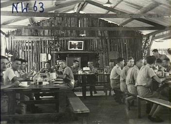 Keywords: 13 Squadron RAAF officer's mess Hughes NT Feb 1943 AWM NWA0061.jpg AWM caption Hughes NT February 1943 Interior of the Officer's Mess of No 13 Hudson Squadron RAAF Here the Officers are at table waiting for their meal to be served to them Note the bush sapling construction of the end wall NWA0061 1943-02 not stated Copyright expired - public domain PD-Australia Hughes Airfield Northern Territory No 13 Squadron RAAF Lockheed Hudson aircrew World War II people of the Royal Australian Air Force World War II forces of Australia in Australia Military life in World War II |