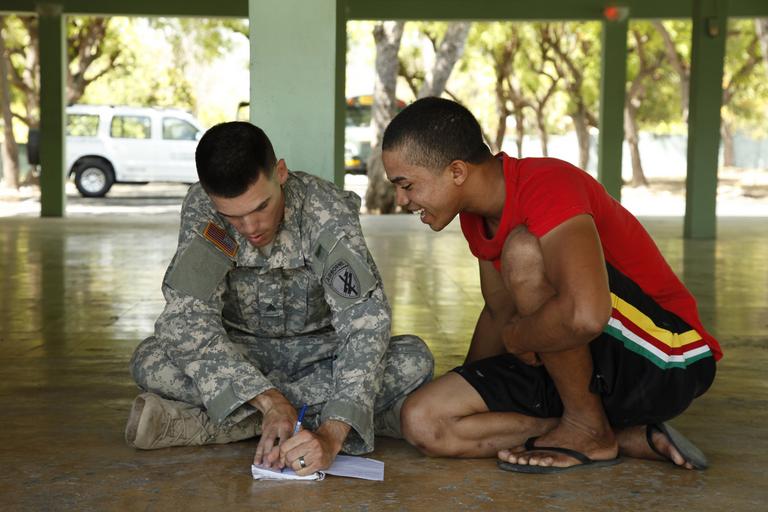 | Keywords: 140504-A-IW172-050 (14167849091).jpg U S Army Sgt John-Kyle Truitt left with the 486th Civil Affairs Battalion teaches English to a Dominican soldier May 4 2014 in Barahona Dominican Republic during Beyond the Horizon BTH 2014 BTH is a recurring chairman of the Joint Chiefs of Staff-directed U S Southern Command-sponsored joint and combined humanitarian exercise in which troops provide services to communities in need while receiving deployment training and building important relationships with partner nations DoD photo by Staff Sgt Richard Lutz U S Army/Released https //www flickr com/photos/39955793 N07/14167849091/ 140504-A-IW172-050 2014-05-04 10 44 https //www flickr com/people/39955793 N07 U S Department of Defense Current Photos PD-USGov U S Department of Defense Current Photos https //flickr com/photos/39955793 N07/14167849091 2016-09-03 06 57 14 United States Government Work Beyond the Horizon 2014 La Guázara United States Department of Defense |