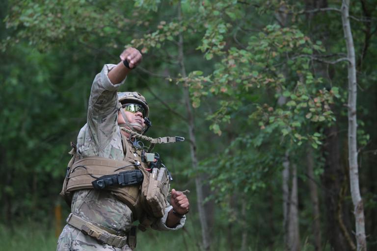 Keywords: u.s. air force usairforce united states air force unitedstatesairforce usaf ang air combat command aircombatcommand acc air national guard airnationalguard 177th fighter wing 177thfighterwing operation kriegshammer operationkriegshammer exercise training grafenwoehr germany bavaria tacp tactical air control party tacticalaircontrolparty creative commons royalty free public domain photo photograph digital matt hecht getty reuters ap outdoor A U.S. Air Force tactical air control party Airman from the 124th Fighter Wing throws a practice grenade during Operation Kriegshammer, a joint training mission at Grafenwoehr Training Area, Bavaria, Germany on July 14, 2014. (U.S. Air National Guard photo by Tech. Sgt. Matt Hecht/Released) A U.S. Air Force tactical air control party Airman from the 124th Fighter Wing throws a practice grenade during Operation Kriegshammer, a joint training mission at Grafenwoehr Training Area, Bavaria, Germany on July 14, 2014. (U.S. Air National Guard photo by Tech. Sgt. Matt Hecht/Released)