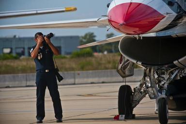 Keywords: united states air force unitedstatesairforce u.s. air force usairforce usaf ang air national guard airnationalguard new jersey newjersey nj atlantic city atlanticcity atlantic city air national guard base atlanticcityairnationalguardbase 177th fighter wing 177thfighterwing thunderbirds demonstration team demonstrationteam air show airshow thunder over the boardwalk thunderovertheboardwalk security forces squadron securityforcessquadron sfs security sunrise morning patrol guard military photo airman aircraft airplane viper f-16d f16d fighting falcon fightingfalcon airport ac egg harbor township eggharbortownship united states unitedstates creative commons royalty free public domain photograph digital matt hecht getty reuters ap outdoor U.S. Air Force Tech. Sgt. Manuel Martinez, a photojournalist assigned to the Thunderbirds Demonstration Team documents activity at Atlantic City Air National Guard Base, N.J. on Aug. 11, 2014. The Thunderbirds are performing in N.J. for the Atlantic City "Thunder Over the Boardwalk Airshow" on Aug. 13. (U.S. Air National Guard photo by Tech. Sgt. Matt Hecht/Released) U.S. Air Force Tech. Sgt. Manuel Martinez, a photojournalist assigned to the Thunderbirds Demonstration Team documents activity at Atlantic City Air National Guard Base, N.J. on Aug. 11, 2014. The Thunderbirds are performing in N.J. for the Atlantic City "Thunder Over the Boardwalk Airshow" on Aug. 13. (U.S. Air National Guard photo by Tech. Sgt. Matt Hecht/Released) |