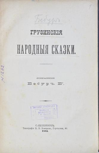 | Keywords: Бебуришвили сказки 1422.jpg Бебу Бебу ишвили Г узинскія на одныя сказки Санкт-Пете бу г 1884 Титульний а куш З особистої бібліотеки І Ф анка 1884 Institution Shevchenko Institute of Literature Digital Collection PD-old-70-1923 1790 books from Germany Franko Personal Library Collections of books in libraries in Ukraine Shevchenko Institute of Literature Uploaded with VicuñaUploader | ||||