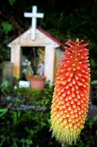 Keywords: dsc03826-1405 dsc038261405 flower chapel la reunion island lareunionisland torch lily torchlily red hot poker redhotpoker sony nex-3 sonynex3 sel1855 outdoor