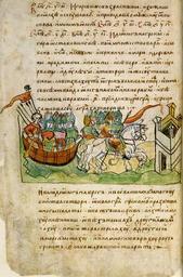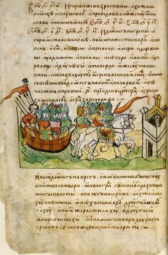 Keywords: 14 2 List of Radzivill Chron.jpg Radziwill Chronicle fol 14v Miniature Oleg of Novgorod's campaign against Constantinople s Rus' Byzantine War 907 Радзивилловская летопись л 14v иниатю а Поход Олега Вещего с д ужиной на Ца ьг ад Tекст из Радзивиловской летописи С сими со всеми поиде Олег на конех и на ко аблех и бе числомъ ко аблей 2000 П ииде къ Ца юг аду; и г еци замкоша Суд а г ад затво иша Лите ату а Кукушкина Радзивиловская летопись Текст Исследование Описание миниатю ст 308 Oleg auf Konstantinopel Text aus der Radziwiłł-Chronik Mit all diesen zog Oleg zu Pferde in die Booten dahin und die Zahl der Boote war 2000 Und er kam bis Zargrad aber die Griechen sperrten den Sund ab und schlossen die Stadttore Graßhoff Freydank Sturm Rauchspur der Tauben Radziwiłł-Chronik S 39 en Radziwiłł Chronicle http //radzivil chat ru/p14o jpg radzivil chat ru century 15 from the Middle Ages unknown PD-Art Radzivill Chronicle Oleg of Novgorod in miniature Rus' Byzantine wars Sieges of Constantinople Slavic weapons Vikings in art
