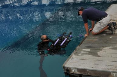 Keywords: 14th Annual International RoboSub Competition 110713-N-UN340-007.jpg en Space and Naval Warfare Systems Center Pacific Diver John Pryor assists University of Florida student Patrick Walters with in-water checks to the university ™s Subjugator Autonomous Underwater Vehicle during the 14th Annual International RoboSub Competition held at SSC Pacific The contest co-sponsored by U S Office of Naval Research and the Association for Unmanned Vehicle Systems International attracted more than 200 students from 30 schools and seven countries worldwide to pit their self-guided robotic submarines against each other in a race for the title Best RoboSub AUVSI is the world's largest non-profit organization devoted exclusively to advancing the unmanned systems community and the development of Autonomous Underwater Vehicles AUVs which are important to the Navy because they perform a variety of missions including underwater mapping mine location and facilitating detailed scientific research As the Navy's Information Dominance Systems Command SPAWAR supports AUV development and strongly encourages all students to explore careers in science technology engineering and mathematics fields 2011-07-13 Rick Naystatt https //www dvidshub net/image/427297 110713-N-UN340-007 2011-07-13 17 28 SAN DIEGO CA US PD-USGov-Military-Navy Autonomous underwater vehicles Office of Naval Research Images from DoD uploaded by Fæ |