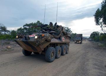 Keywords: 14th Light Horse Regiment, Australian Army at Shoalwater Bay.jpg 070620-N-4965F-005 SHOALWATER BAY Australia June 20 2007 - Soldiers assigned to the Australian Defense Force 2nd/14th Light Horse Regiment maneuver from Sabina Point at the Shoalwater Bay Training Area following an amphibious beach landing exercise during exercise Talisman Saber 2007 TS07 TS07 is a biennial field training exercise held between U S and Australian forces to demonstrates the U S and Australian commitment to our military alliance and to regional security while maintaining a high level of interoperability U S Navy photo by Mass Communication Specialist 1st Class James E Foehl RELEASED Source http //www navy mil/management/photodb/photos/070620-N-4965F-005 jpg US Navy PD-USGov-Military-Navy ASLAV Talisman Sabre 2007 |