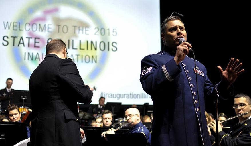 | Keywords: army air force illinois national guard inauguration ceremony governor elect bruce rauner springfield ill. ill state commander chief soldiers airmen 144 566 band peoria usa people U.S. Air Force Master Sgt. Douglas A. Mattsey, regional band craftsman with the 566th Air Force Band, sings with the Illinois National Guard's 144th Army Band and 566th Air Force Band as they perform at the inauguration ceremony of Governor-elect Bruce Rauner in Springfield, Ill., Jan. 12, 2015. As Illinois' governor, Rauner will serve as the commander in chief for the Soldiers and Airmen of the Illinois National Guard while they are not under federal activation. (U.S. Air National Guard photo by Staff Sgt. Lealan Buehrer/Released) U.S. Air Force Master Sgt. Douglas A. Mattsey, regional band craftsman with the 566th Air Force Band, sings with the Illinois National Guard's 144th Army Band and 566th Air Force Band as they perform at the inauguration ceremony of Governor-elect Bruce Rauner in Springfield, Ill., Jan. 12, 2015. As Illinois' governor, Rauner will serve as the commander in chief for the Soldiers and Airmen of the Illinois National Guard while they are not under federal activation. (U.S. Air National Guard photo by Staff Sgt. Lealan Buehrer/Released) |