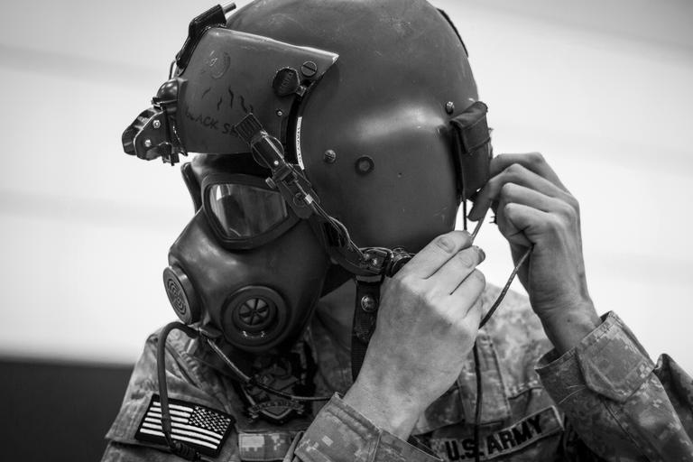| Keywords: u.s. army usarmy aviation aasf army aviation support facility armyaviationsupportfacility nj new jersey newjersey joint base mdl jointbasemdl joint base mcguire-dix-lakehurst jointbasemcguiredixlakehurst new jersey army national guard newjerseyarmynationalguard national guard nationalguard uh-60 uh60 black hawk blackhawk maintenance soldier soldiers wash racks washracks military photo usa royalty free public domain gov getty reuters ap public domain publicdomain royalty free royaltyfree 1-150th assault helicopter battalion 1150thassaulthelicopterbattalion ahb helicopter uh-72 uh72 lakota night vision nightvision formation flight army blackandwhite monochrome black and white U.S. Army Sgt. Ralph Foy tries on his gas mask and helmet in preparation for gunnery training at the Army Aviation Support Facility, which is located at Joint Base McGuire-Dix-Lakehurst, N.J., April 14, 2015. Foy is a UH-60 Black Hawk helicopter crew chief from the New Jersey Army National Guard's 1-150th Assault Helicopter Battalion. (U.S. Air National Guard photo by Tech. Sgt. Matt Hecht/Released) U.S. Army Sgt. Ralph Foy tries on his gas mask and helmet in preparation for gunnery training at the Army Aviation Support Facility, which is located at Joint Base McGuire-Dix-Lakehurst, N.J., April 14, 2015. Foy is a UH-60 Black Hawk helicopter crew chief from the New Jersey Army National Guard's 1-150th Assault Helicopter Battalion. (U.S. Air National Guard photo by Tech. Sgt. Matt Hecht/Released) |