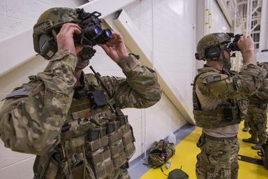 | Keywords: joint training jointtraining training train exercise joint fast-rope insertion extraction system fastropeinsertionextractionsystem fries special purpose insertion extraction system specialpurposeinsertionextractionsystem spies tactical air control party tacticalaircontrolparty tacp 227th air support operations squadron 227thairsupportoperationssquadron 227th asos 227thasos air support operations squadron airsupportoperationssquadron asos new jersey air national guard newjerseyairnationalguard njang air national guard airnationalguard airman airmen uh-60 black hawk uh60blackhawk black hawk blackhawk uh-60 uh60 helicopter 1-150th assault helicopter battalion 1150thassaulthelicopterbattalion 1-150th ahb 1150thahb new jersey army national guard newjerseyarmynationalguard njarng army national guard armynationalguard arng soldier soldiers new jersey national guard newjerseynationalguard njng national guard nationalguard u.s. national guard usnationalguard long range surveillance c company 1-158th cavalry longrangesurveillanceccompany1158thcavalry long range surveillance longrangesurveillance cavalry maryland army national guard marylandarmynationalguard joint base mcguire-dix-lakehurst jointbasemcguiredixlakehurst jb mdl jbmdl new jersey newjersey n.j. nj united states air force unitedstatesairforce usaf air force airforce af united states army unitedstatesarmy usa army u.s. military usmilitary military photo by master sgt. mark c. olsen photobymastersgtmarkcolsen april 21 2015 april212015 u.s. us people Fast-Rope Insertion Extraction System (FRIES) Masters’ Tech. Sgt. Chris Donohue, left, and Staff Sgt. Kane Lawlor, both with the 227th Air Support Operations Squadron, New Jersey Air National Guard, adjust their night vision goggles before performing the night exercise portion of FRIES training from a UH-60 Black Hawk helicopter with the 1-150th Assault Helicopter Battalion, New Jersey Army National Guard, at Joint Base McGuire-Dix-Lakehurst, N.J., April 21, 2015. The 227th were recertified on FRIES training by Soldiers from the Long Range Surveillance C Company, 1-158th Cavalry, Maryland Army National Guard. This was the first time the 1-150th Assault Helicopter Battalion has performed FRIES training with their own helicopters and equipment in New Jersey. FRIES is used when a fast exit from a rotary-wing aircraft into a restricted area, including water operations, is required. It provides a method for inserting and extracting special operations forces personnel when an aircraft cannot land. (U.S. Air National Guard photo by Master Sgt. Mark C. Olsen/Released) Fast-Rope Insertion Extraction System (FRIES) Masters’ Tech. Sgt. Chris Donohue, left, and Staff Sgt. Kane Lawlor, both with the 227th Air Support Operations Squadron, New Jersey Air National Guard, adjust their night vision goggles before performing the night exercise portion of FRIES training from a UH-60 Black Hawk helicopter with the 1-150th Assault Helicopter Battalion, New Jersey Army National Guard, at Joint Base McGuire-Dix-Lakehurst, N.J., April 21, 2015. The 227th were recertified on FRIES training by Soldiers from the Long Range Surveillance C Company, 1-158th Cavalry, Maryland Army National Guard. This was the first time the 1-150th Assault Helicopter Battalion has performed FRIES training with their own helicopters and equipment in New Jersey. FRIES is used when a fast exit from a rotary-wing aircraft into a restricted area, including water operations, is required. It provides a method for inserting and extracting special operations forces personnel when an aircraft cannot land. (U.S. Air National Guard photo by Master Sgt. Mark C. Olsen/Released) |
