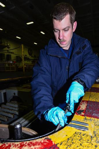 Keywords: john c. stennis johncstennis cvn 74 cvn74 aircraft carrier aircraftcarrier mcsn christopher frost mcsnchristopherfrost pacific ocean pacificocean people 150506-N-IK337-005 PACIFIC OCEAN (May 6, 2015) - Machinist's Mate Fireman Nate Farmer, from Temecula, Calif., performs maintenance on a package conveyer in the hangar bay of USS John C. Stennis (CVN 74). Stennis is currently undergoing an operational training period in preparation for future deployments. (U.S. Navy Photo by Mass Communication Specialist Seaman Christopher Frost / Released) 150506-N-IK337-005 PACIFIC OCEAN (May 6, 2015) - Machinist's Mate Fireman Nate Farmer, from Temecula, Calif., performs maintenance on a package conveyer in the hangar bay of USS John C. Stennis (CVN 74). Stennis is currently undergoing an operational training period in preparation for future deployments. (U.S. Navy Photo by Mass Communication Specialist Seaman Christopher Frost / Released) |