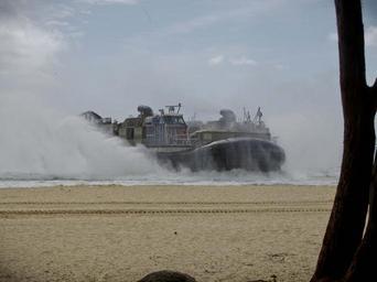| Keywords: bellows air force base bellowsairforcebase hawaii usa outdoor A Landing Craft Air Cushion, with 15th Marine Expeditionary Unit, conducts an amphibious landing demonstration at Marine Corps Training Area Bellows, Hawaii May 19, 2015. The landing is part of Culebra Koa 15, an on-going joint sea-basing exercise taking place in Hawaii during the MARFORPAC-hosted U.S. Pacific Command Amphibious Leaders Symposium (PALS). PALS is designed to bring together senior leaders of allies and partners Marine Corps, naval infantries, and militaries spanning the Indo-Asia-Pacific region with interest in military amphibious capability development. This year, 22 nations sent representatives to observe the training. (U.S. Marine Corps photo by Cpl.Hilda Becerra) A Landing Craft Air Cushion, with 15th Marine Expeditionary Unit, conducts an amphibious landing demonstration at Marine Corps Training Area Bellows, Hawaii May 19, 2015. The landing is part of Culebra Koa 15, an on-going joint sea-basing exercise taking place in Hawaii during the MARFORPAC-hosted U.S. Pacific Command Amphibious Leaders Symposium (PALS). PALS is designed to bring together senior leaders of allies and partners Marine Corps, naval infantries, and militaries spanning the Indo-Asia-Pacific region with interest in military amphibious capability development. This year, 22 nations sent representatives to observe the training. (U.S. Marine Corps photo by Cpl.Hilda Becerra) |