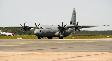 MAKE A MEME View Large Image One of two C-130J Super Hercules is taxied on the Riga International Airport, Latvia, flightline after landing and joining exercise Saber Strike 15 June 10, 2015. Airmen from the 37th Airlift Squadron, Ramstein Air Base, Germany, provided ...