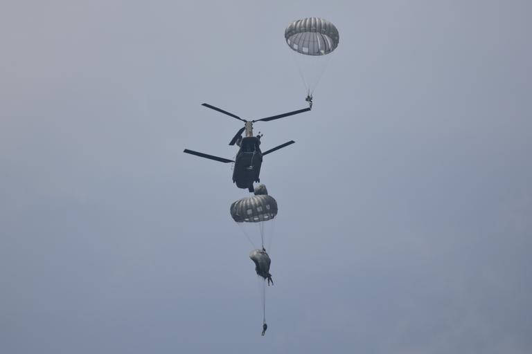 Keywords: usa usaf u.s. air force usairforce united states air force unitedstatesairforce air national guard airnationalguard air force airforce ang acc u.s. army usarmy reserve 227th air support operations squadron 227thairsupportoperationssquadron 227th asos 227thasos national guard nationalguard nj njang new jersey air national guard newjerseyairnationalguard new jersey national guard newjerseynationalguard airborne jump training maryland army national guard marylandarmynationalguard soldier airman airmen joint training jointtraining tacp jtac army national guard armynationalguard 404th civil affairs battalion 404thcivilaffairsbattalion civil affairs civilaffairs joint base mdl jointbasemdl joint base mcguire-dix-lakehurst jointbasemcguiredixlakehurst ch-47 ch47 chinook helicopter air assault airassault aviation helo chopper military photo combat training combattraining public domain royalty free getty reuters ap monochrome U.S. Army Reserve Soldiers from the 404th Civil Affairs Battalion (Airborne) and Tactical Air Control Party Airmen from the New Jersey Air National Guard's 227th Air Support Operations Squadron jump from a CH-47 Chinook helicopter from the Maryland Army National Guard at Scorpion Drop Zone on Joint Base McGuire-Dix-Lakehurst, N.J., June 12, 2015. (U.S. Air National Guard photo by Tech. Sgt. Matt Hecht/Released) U.S. Army Reserve Soldiers from the 404th Civil Affairs Battalion (Airborne) and Tactical Air Control Party Airmen from the New Jersey Air National Guard's 227th Air Support Operations Squadron jump from a CH-47 Chinook helicopter from the Maryland Army National Guard at Scorpion Drop Zone on Joint Base McGuire-Dix-Lakehurst, N.J., June 12, 2015. (U.S. Air National Guard photo by Tech. Sgt. Matt Hecht/Released)