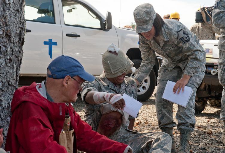 Keywords: pathfinder minuteman camp rilea camprilea oregon cascadia subduction zone 124th fighter wing 124thfighterwing air national guard airnationalguard boise gowen field gowenfield idaho ne514 united states unitedstates outdoor Master Sgt. Kathy McEwen, a medial technician with the 152nd CBRNE (Chemical, Biological, Radiological, Nuclear and Explosives) Enhanced Force Response Package Medical Element from Reno, Nevada assists a simulated victim, Master Sgt. Fletch Harris with the 124th Medical Group from Boise, Idaho during the Pathfinder Minuteman Exercise, Aug. 5, 2015 at Camp Rilea in Warrenton, Oregon. 124th Medical Group and Chaplains join first responders from six states for the annual two-day emergency response exercise in the aftermath of a simulated Cascadia Subduction Zone earthquake and tsunami. Experts suggest that the Northwest is overdue for a magnitude 7.0 or greater earthquake. (Air National Guard photo by Tech. Sgt. Sarah Pokorney/Released) Master Sgt. Kathy McEwen, a medial technician with the 152nd CBRNE (Chemical, Biological, Radiological, Nuclear and Explosives) Enhanced Force Response Package Medical Element from Reno, Nevada assists a simulated victim, Master Sgt. Fletch Harris with the 124th Medical Group from Boise, Idaho during the Pathfinder Minuteman Exercise, Aug. 5, 2015 at Camp Rilea in Warrenton, Oregon. 124th Medical Group and Chaplains join first responders from six states for the annual two-day emergency response exercise in the aftermath of a simulated Cascadia Subduction Zone earthquake and tsunami. Experts suggest that the Northwest is overdue for a magnitude 7.0 or greater earthquake. (Air National Guard photo by Tech. Sgt. Sarah Pokorney/Released) |