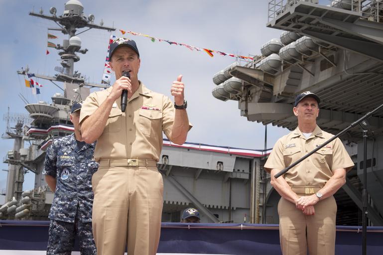 Keywords: adm. jonathan greenert admjonathangreenert cno chief of naval operations chiefofnavaloperations navy leadership navyleadership u.s. navy usnavy san diego sandiego calif. calif outdoor 150817-N-AT895-359 SAN DIEGO Calif. (Aug. 17, 2015) Commander, Naval Air Forces (CNAF) Vice Adm. Mike Shoemaker introduces Chief of Naval Operations (CNO) Adm. Jonathan Greenert to crew members from USS George Washington (CVN 73) during a Cooks from the Valley barbecue at Naval Air Station North Island. George Washington completed a crew and equipment swap with the aircraft carrier USS Ronald Reagan (CVN 76) before beginning its transit to Norfolk, Virginia, where it will prepare for its mid-life refueling and complex overhaul (RCOH).(U.S. Navy photo by Mass Communication Specialist 1st Class Nathan Laird/Released) 150817-N-AT895-359 SAN DIEGO Calif. (Aug. 17, 2015) Commander, Naval Air Forces (CNAF) Vice Adm. Mike Shoemaker introduces Chief of Naval Operations (CNO) Adm. Jonathan Greenert to crew members from USS George Washington (CVN 73) during a Cooks from the Valley barbecue at Naval Air Station North Island. George Washington completed a crew and equipment swap with the aircraft carrier USS Ronald Reagan (CVN 76) before beginning its transit to Norfolk, Virginia, where it will prepare for its mid-life refueling and complex overhaul (RCOH).(U.S. Navy photo by Mass Communication Specialist 1st Class Nathan Laird/Released) |