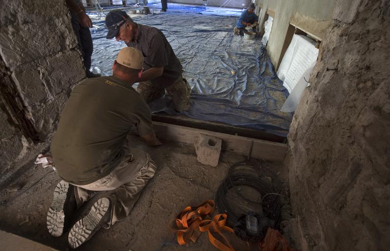 | Keywords: eucom hca humanitarian civic assistance humanitariancivicassistance 435th af georgia tbilisi 435th agow 435thagow 435th cts 435thcts construction usaf usafe renovations building partnership capacity buildingpartnershipcapacity nato united helping nations helpingnations airmen school gymnasium u.s. military engineers usmilitaryengineers europe georgian army georgianarmy u.s. army civil engineers usarmycivilengineers gori U.S. Air Force Staff Sgt. David Dengate, 435th Construction Training Squadron pavement and equipment operator, works with a Georgian army engineer to help fill in concrete in the entrance to the gymnasium of Public School No. 4 in Gori, Georgia, Aug. 27, 2015. The restoration of the gymnasium was part of the Georgian Humanitarian and Civic Assistance project, which supports national military strategy and enhances the operational readiness skills of military personnel while providing substantial benefits to host country populations. (U.S. Air Force photo/Staff Sgt. Sara Keller) U.S. Air Force Staff Sgt. David Dengate, 435th Construction Training Squadron pavement and equipment operator, works with a Georgian army engineer to help fill in concrete in the entrance to the gymnasium of Public School No. 4 in Gori, Georgia, Aug. 27, 2015. The restoration of the gymnasium was part of the Georgian Humanitarian and Civic Assistance project, which supports national military strategy and enhances the operational readiness skills of military personnel while providing substantial benefits to host country populations. (U.S. Air Force photo/Staff Sgt. Sara Keller) |
