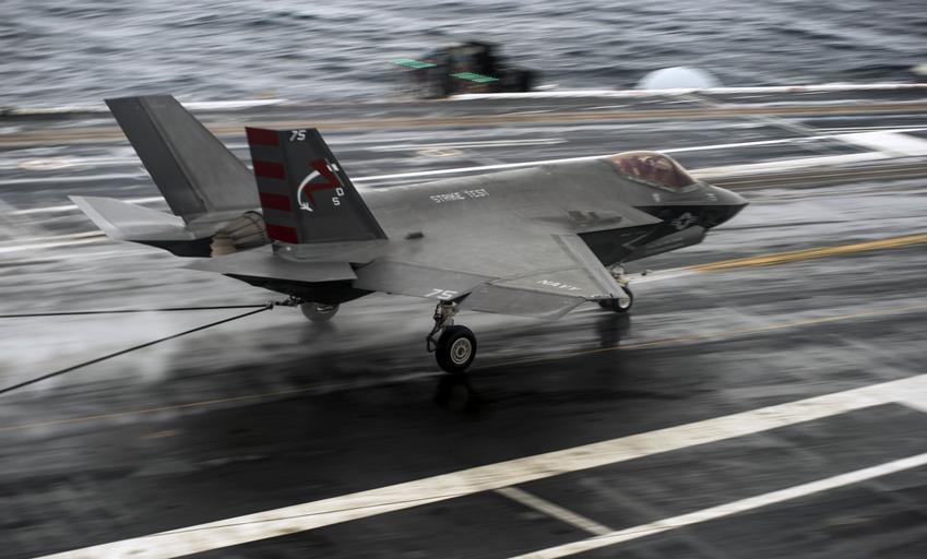 | Keywords: f-35 f35 ike uss dwight d. eisenhower ussdwightdeisenhower atlantic ocean atlanticocean outdoor 151002-N-UY653-115. ATLANTIC OCEAN (Oct. 2, 2015) An F-35C Lightning II carrier variant joint strike fighter assigned to the Salty Dogs of Air Test and Evaluation Squadron (VX) 23 makes an arrested landing aboard the aircraft carrier USS Dwight D. eisenhower (CVN 69). The F-35C Lightning II Pax River Integrated Test Force is currently conducting follow-on sea trials aboard the Eisenhower. (U.S. Navy photo by Mass Communication Specialist 3rd Class Utah Kledzik/Released) 151002-N-UY653-115. ATLANTIC OCEAN (Oct. 2, 2015) An F-35C Lightning II carrier variant joint strike fighter assigned to the Salty Dogs of Air Test and Evaluation Squadron (VX) 23 makes an arrested landing aboard the aircraft carrier USS Dwight D. eisenhower (CVN 69). The F-35C Lightning II Pax River Integrated Test Force is currently conducting follow-on sea trials aboard the Eisenhower. (U.S. Navy photo by Mass Communication Specialist 3rd Class Utah Kledzik/Released)  |