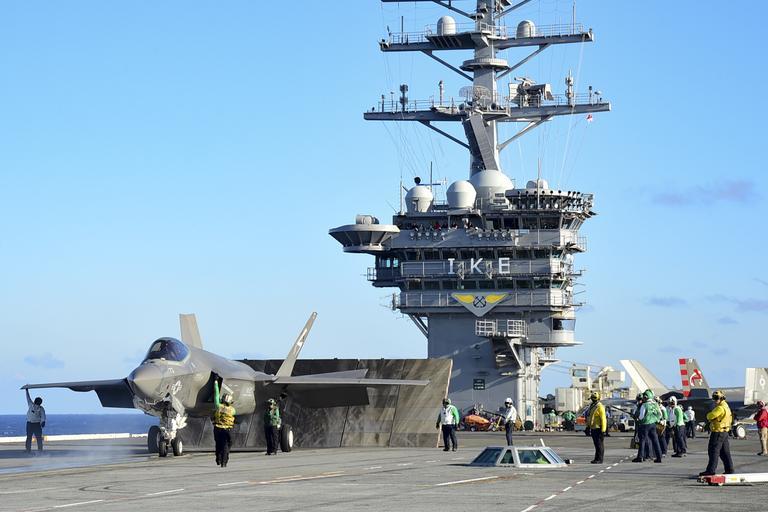 | Keywords: cvn 69 cvn69 salty dogs saltydogs vx-23 vx23 f-35 f35 uss dwight d. eisenhower ussdwightdeisenhower atlantic ocean atlanticocean outdoor 151003-N-KK394-458. ATLANTIC OCEAN (Oct. 3, 2015) - An F-35C Lightning II carrier variant joint strike fighter assigned to the Salty Dogs of Air Test and Evaluation Squadron (VX) 23 prepares to take-off from the aircraft carrier USS Dwight D. Eisenhower (CVN 69). The F-35C Lightning II Pax River Integrated Test Force is currently conducting follow-on sea trials aboard the Eisenhower. (U.S. Navy photo by Mass Communication Specialist Seaman Anderson W. Branch/Released) 151003-N-KK394-458. ATLANTIC OCEAN (Oct. 3, 2015) - An F-35C Lightning II carrier variant joint strike fighter assigned to the Salty Dogs of Air Test and Evaluation Squadron (VX) 23 prepares to take-off from the aircraft carrier USS Dwight D. Eisenhower (CVN 69). The F-35C Lightning II Pax River Integrated Test Force is currently conducting follow-on sea trials aboard the Eisenhower. (U.S. Navy photo by Mass Communication Specialist Seaman Anderson W. Branch/Released)  |