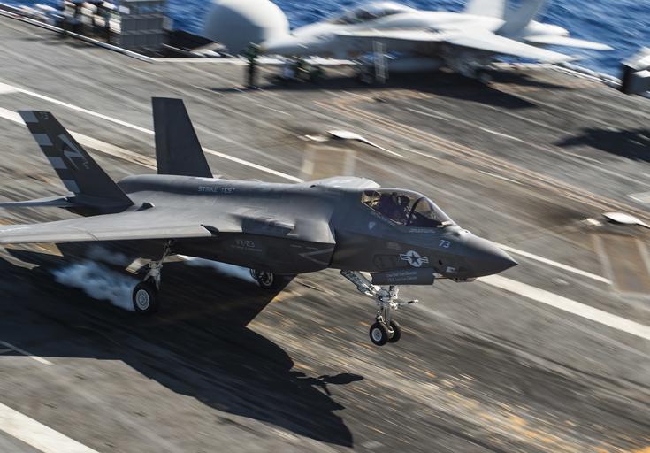 | Keywords: ike f-35 f35 uss dwight d. eisenhower ussdwightdeisenhower atlantic ocean atlanticocean outdoor 151002-N-UY653-122. ATLANTIC OCEAN (Oct. 3, 2015) An F-35C Lightning II carrier variant joint strike fighter assigned to the Salty Dogs of Air Test and Evaluation Squadron (VX) 23 makes an arrested landing aboard the aircraft carrier USS Dwight D. Eisenhower (CVN 69). The F-35C Lightning II Pax River Integrated Test Force is currently conducting follow-on sea trials aboard the Eisenhower. (U.S. Navy photo by Mass Communication Specialist 3rd Class Utah Kledzik) 151002-N-UY653-122. ATLANTIC OCEAN (Oct. 3, 2015) An F-35C Lightning II carrier variant joint strike fighter assigned to the Salty Dogs of Air Test and Evaluation Squadron (VX) 23 makes an arrested landing aboard the aircraft carrier USS Dwight D. Eisenhower (CVN 69). The F-35C Lightning II Pax River Integrated Test Force is currently conducting follow-on sea trials aboard the Eisenhower. (U.S. Navy photo by Mass Communication Specialist 3rd Class Utah Kledzik) |
