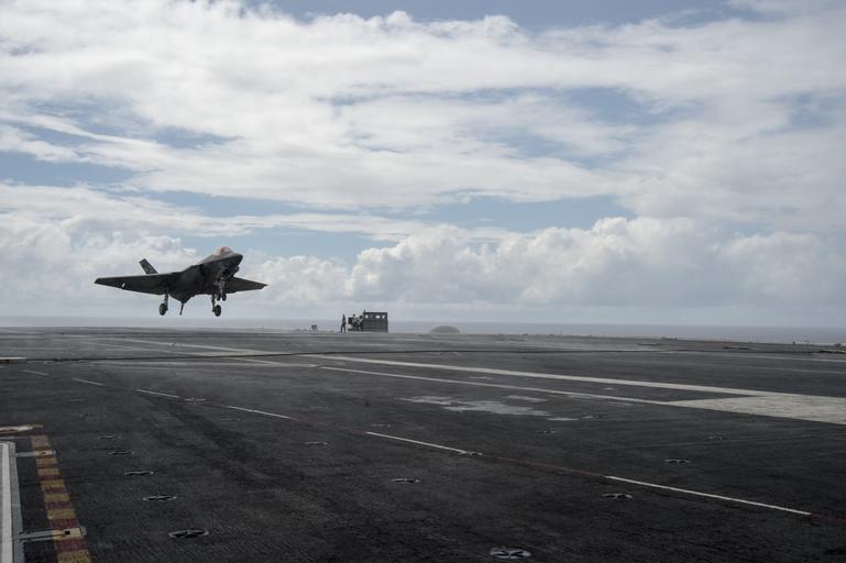 | Keywords: ike f-35 f35 vx 23 vx23 flight ops flightops uss dwight d. eisenhower ussdwightdeisenhower atlantic ocean atlanticocean outdoor 151006-N-QS750-009 ATLANTIC OCEAN (Oct. 6, 2015) An F-35C Lightning II carrier variant joint strike fighter assigned to the Salty Dogs of Air Test and Evaluation Squadron (VX) 23 lands on the flight deck of the aircraft carrier USS Dwight D. Eisenhower (CVN 69). The F-35C Lightning II Pax River Integrated Test Force is currently conducting follow-on sea trials aboard the Eisenhower. (U.S. Navy photo by Mass Communication Specialist 3rd Class Corey Dill) 151006-N-QS750-009 ATLANTIC OCEAN (Oct. 6, 2015) An F-35C Lightning II carrier variant joint strike fighter assigned to the Salty Dogs of Air Test and Evaluation Squadron (VX) 23 lands on the flight deck of the aircraft carrier USS Dwight D. Eisenhower (CVN 69). The F-35C Lightning II Pax River Integrated Test Force is currently conducting follow-on sea trials aboard the Eisenhower. (U.S. Navy photo by Mass Communication Specialist 3rd Class Corey Dill)  |