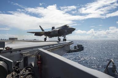 | Keywords: ike f-35 f35 vx 23 vx23 flight ops flightops uss dwight d. eisenhower ussdwightdeisenhower atlantic ocean atlanticocean outdoor 151006-N-QS750-043 ATLANTIC OCEAN (Oct. 6, 2015) An F-35C Lightning II carrier variant joint strike fighter assigned to the Salty Dogs of Air Test and Evaluation Squadron (VX) 23 launches off the flight deck of the aircraft carrier USS Dwight D. Eisenhower (CVN 69). The F-35C Lightning II Pax River Integrated Test Force is currently conducting follow-on sea trials aboard the Eisenhower. (U.S. Navy photo by Mass Communication Specialist 3rd Class Corey Dill) 151006-N-QS750-043 ATLANTIC OCEAN (Oct. 6, 2015) An F-35C Lightning II carrier variant joint strike fighter assigned to the Salty Dogs of Air Test and Evaluation Squadron (VX) 23 launches off the flight deck of the aircraft carrier USS Dwight D. Eisenhower (CVN 69). The F-35C Lightning II Pax River Integrated Test Force is currently conducting follow-on sea trials aboard the Eisenhower. (U.S. Navy photo by Mass Communication Specialist 3rd Class Corey Dill)  |