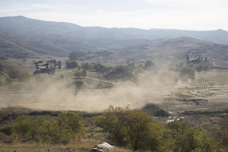 | Keywords: usmc exercise egemen exerciseegemen turkey ampibious assault ampibiousassault bi-lateral training bilateraltraining beach lcac mv-22 mv22 osprey comcam phibron 4 phibron4 kearsarge amphibious ready group kearsargeamphibiousreadygroup amphibious squadron 4 amphibioussquadron4 doganbey outdoor landscape mountainside hill foothill mountain sky 151027-M-OQ277-166 DOGANBEY, Turkey (Oct. 27, 2015) U.S. Marine MV-22B Osprey, assigned to Marine Medium Tiltrotor Squadron 162 (Reinforced), 26th Marine Expeditionary Unit, take off from a landing zone during a joint amphibious assault as part of exercise Egemen 2015 in Doganbey, Turkey, Oct. 27. Egemen is a Turkish-led and hosted amphibious exercise designed to increase tactical proficiencies and interoperability among participants. The 26th Marine Expeditionary Unit is deployed to the 6th fleet area of in support of U.S. national security interests in Europe. (U.S. Marine Corps photo by Gunnery Sgt. Andrew D. Pendracki/ Released) 151027-M-OQ277-166 DOGANBEY, Turkey (Oct. 27, 2015) U.S. Marine MV-22B Osprey, assigned to Marine Medium Tiltrotor Squadron 162 (Reinforced), 26th Marine Expeditionary Unit, take off from a landing zone during a joint amphibious assault as part of exercise Egemen 2015 in Doganbey, Turkey, Oct. 27. Egemen is a Turkish-led and hosted amphibious exercise designed to increase tactical proficiencies and interoperability among participants. The 26th Marine Expeditionary Unit is deployed to the 6th fleet area of in support of U.S. national security interests in Europe. (U.S. Marine Corps photo by Gunnery Sgt. Andrew D. Pendracki/ Released) |