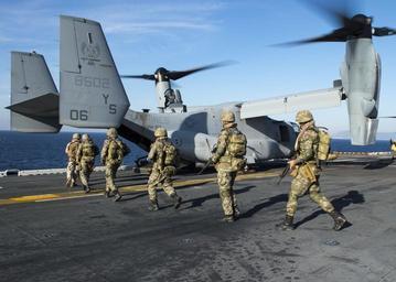 | Keywords: uss kearsarge (lhd 3); npase; preston; 26th marine expeditionary usskearsargelhd3npasepreston26thmarineexpeditionary aegean sea aegeansea usa uss kearsarge (lhd 3); npase; preston; 26th marine expeditionary unit; lhd 3; underway; egemen; turkish marines; marines; turkey; osprey usskearsargelhd3npasepreston26thmarineexpeditionaryunitlhd3underwayegementurkishmarinesmarinesturkeyosprey outdoor 151027-N-AX638-061 AEGEAN SEA (Oct. 27, 2015) Turkish Marines board an MV-22 Osprey on the flight deck of the amphibious assault ship USS Kearsarge (LHD 3) while participating in Exercise Egemen 2015, Oct. 27. Egemen is a Turkish-led and hosted amphibious exercise designed to increase tactical proficiencies and interoperability among participants. Kearsarge, deployed as part of the Kearsarge Amphibious Ready Group, is conducting naval operations in the U.S. 6th Fleet area of operations in support of U.S. national security interests in Europe. (U.S. Navy Photo by Mass Communication Specialist Seaman Tyler Preston/Released) 151027-N-AX638-061 AEGEAN SEA (Oct. 27, 2015) Turkish Marines board an MV-22 Osprey on the flight deck of the amphibious assault ship USS Kearsarge (LHD 3) while participating in Exercise Egemen 2015, Oct. 27. Egemen is a Turkish-led and hosted amphibious exercise designed to increase tactical proficiencies and interoperability among participants. Kearsarge, deployed as part of the Kearsarge Amphibious Ready Group, is conducting naval operations in the U.S. 6th Fleet area of operations in support of U.S. national security interests in Europe. (U.S. Navy Photo by Mass Communication Specialist Seaman Tyler Preston/Released) |