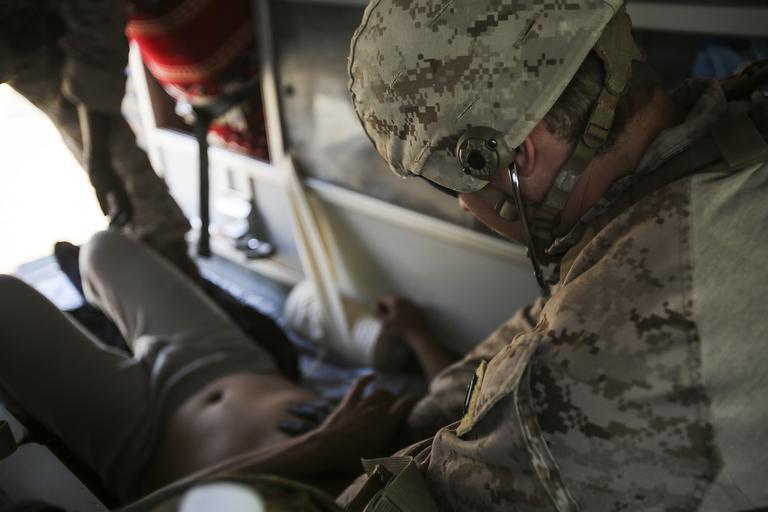 Keywords: usmc marine corps marinecorps marine life saver lifesaver iraq al taqaddum altaqaddum corpsman spmagtfcrcc iq U.S. Navy Petty Officer 3rd Class Bryan Rileysilva, a hospitalman with Company B, 1st Battalion, 7th Marine Regiment, Special Purpose Marine Air Ground Task Force – Crisis Response – Central Command, treats an Iraqi soldier for combat-related injuries, Iraq, Nov. 28, 2015. Wounded Iraqi soldiers are occasionally transported from battlefields in Ramadi and Fallujah, Iraq, to Al Taqaddum to receive medical treatment from U.S. personnel. U.S. Navy corpsmen with “Bravo” Company, 1st Bn., 7th Marines, are the first responders to attend to the casualties. U.S. Marines and Sailors with SPMAGTF-CR-CC are currently deployed in support of the Combined Joint Task Force - Operation Inherent Resolve mission. (U.S. Marine Corps photo by Sgt. Rick Hurtado / Released) U.S. Navy Petty Officer 3rd Class Bryan Rileysilva, a hospitalman with Company B, 1st Battalion, 7th Marine Regiment, Special Purpose Marine Air Ground Task Force – Crisis Response – Central Command, treats an Iraqi soldier for combat-related injuries, Iraq, Nov. 28, 2015. Wounded Iraqi soldiers are occasionally transported from battlefields in Ramadi and Fallujah, Iraq, to Al Taqaddum to receive medical treatment from U.S. personnel. U.S. Navy corpsmen with “Bravo” Company, 1st Bn., 7th Marines, are the first responders to attend to the casualties. U.S. Marines and Sailors with SPMAGTF-CR-CC are currently deployed in support of the Combined Joint Task Force - Operation Inherent Resolve mission. (U.S. Marine Corps photo by Sgt. Rick Hurtado / Released)