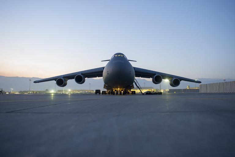 | Keywords: bagram airfield bagramairfield 455th aew 455thaew bagram afghanistan freedom's sentinel freedomssentinel af outdoor A C-5 Galaxy from Travis Air Force Base, Calif., sits on the ramp as the sun sets prior to a sortie at Bagram Air Field, Afghanistan, Dec. 28, 2015. The C-5 Galaxy is a heavy airlifter with intercontinental range. It is the largest U.S. military aircraft, capable of carrying more than 270,000 pounds of cargo. A C-5 Galaxy from Travis Air Force Base, Calif., sits on the ramp as the sun sets prior to a sortie at Bagram Air Field, Afghanistan, Dec. 28, 2015. The C-5 Galaxy is a heavy airlifter with intercontinental range. It is the largest U.S. military aircraft, capable of carrying more than 270,000 pounds of cargo. |