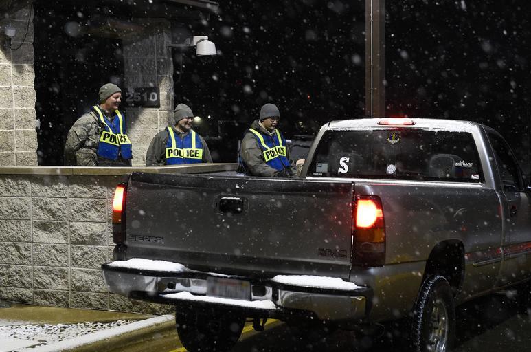 | Keywords: air force usaf 182 aw airlift wing peoria illinois ill ang national guard il angb ngb mobility command amc z northcom snow security forces winter main gate december usa Installation entry controllers with the 182nd Security Forces Squadron, Illinois Air National Guard, check identification cards during morning traffic at the 182nd Airlift Wing, Peoria, Ill., Dec. 30, 2015. That day’s snow was the first measurable snowfall since a record 4.6 inches fell on Nov. 21. (U.S. Air National Guard photo by Staff Sgt. Lealan Buehrer/Released)(License plate distorted for OPSEC.) Installation entry controllers with the 182nd Security Forces Squadron, Illinois Air National Guard, check identification cards during morning traffic at the 182nd Airlift Wing, Peoria, Ill., Dec. 30, 2015. That day’s snow was the first measurable snowfall since a record 4.6 inches fell on Nov. 21. (U.S. Air National Guard photo by Staff Sgt. Lealan Buehrer/Released)(License plate distorted for OPSEC.) |