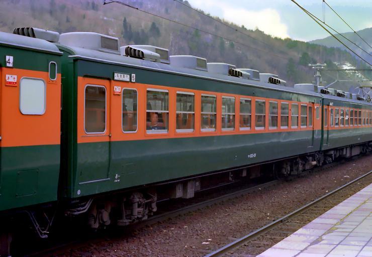 Keywords: 153series04t101s'.JPG en Japanese National Railways 153 series EMU trailer car SaHa 153-101 inserted in a 165 series EMU set at Narai Station on a Chuo Main Line Kiso express service for Nagoya ja 165系に組み込まれて 行 き の運用に就いたサハ153-101 中央 線奈良井駅にて 1979-03-14 own Shellparakeet other versions cc-zero Uploaded with UploadWizard JNR 153 Narai Station Green and orange rail vehicles Number 5 on rail vehicles 1979 in rail transport in Japan March 1979 in Asia 19790314 Shiojiri Nagano Photographs taken on 1979-03-14 Shiojiri Nagano