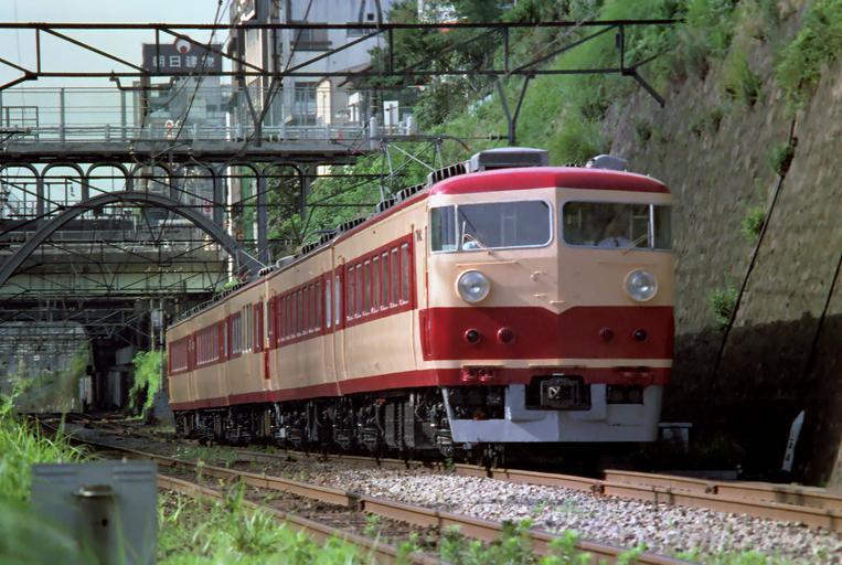 Keywords: 157series02.JPG A Japanese National Railways 157 series EMU including the KuRo 157 imperial train car on an empty stock working near Meguro on the Yamanote freight line in Tokyo own Shellparakeet 1978-06-19 1978 in rail transport in Japan JNR 157 Rail cars of the Emperor of Japan June 1978 photographs |
