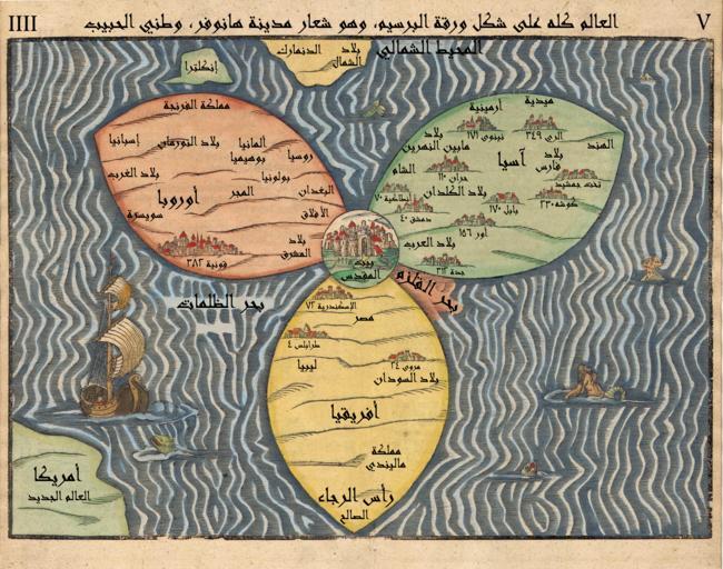 | Keywords: 1581 Bunting clover leaf map-ar.png Artwork creator Heinrich Bünting خارطة للعالم على شكل ورقة البرسيم قارَّات العالم القديم الثلاثة وهي أوروبا وآسيا وأفريقيا ، وتظهر مدينة القدس في الوسط، كما تمَّت الإشارة إلى بريطانيا العظمى، واسكندنافيا وأمريكا / العالم الجديد الصفحة 4f من مؤلَّف مطبوع في مغدبيرغ Die gantze Welt in einem Kleberblat / Welches ist der Stadt Hannover meines lieben Vaterlandes Wapen <br/> Stylized world map in the shape of a clover-leaf the three classical continents of Europe Asia Africa with Jerusalem at the center with additional indication of Great Britain Scandinavia and America / the New World Page 4f of Die eigentliche und warhafftige gestalt der Erden und des Meers 1581 printed in Magdeburg 1581 woodcut Derived from 150px Penyulap derivative باسم derivative باسم other versions derivative work 1581_Bunting_clover_leaf_map jpg Humus sapiens original upload Translated to Arabic - عُرِّبت باسم 1581_Bunting_clover_leaf_map jpg PD-Art-100 Original upload log This image is a derivative work of the following images خارطة العالم تتوسطها مدينة القدس jpg File 1581_Bunting_clover_leaf_map jpg licensed with PD-Art PD-Art-100 2006-11-30T05 48 16Z Tarawneh 4441x3496 15053069 Bytes <nowiki>higher res </nowiki> 2006-04-12T08 52 05Z Humus sapiens 1736x1472 972644 Bytes <nowiki> Summary Bünting clover leaf map A woodcut made in 1581 in Magdeburg Jerusalem is in the center surrounded by Europe Asia and Africa Source http //www helmink com/Antique_Map_Bunting_World/ Jerusal</nowiki> Uploaded with derivativeFX DEFAULTSORT Bünting Category 1580s maps of the world 1581 maps 16th-century woodcuts Cloverleaves Engraved maps Heinrich Bünting Jerusalem in art Maps in Arabic Old maps of the Holy Land |