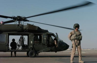 | Keywords: 159thAircrewStanding.jpg  Sergeant Jonathon Delong from Passadena Md Company C 2nd Battalion 224th Aviation Regiment Maryland National Guard attached to the 7th Battalion 101st Aviation Regiment stands near his UH-60 Black Hawk as he waits to greet Lt Gen Peter Chiarelli Multi National Corps-Iraq commander at Logistical Support Area Anaconda Iraq August 3 Chiarelli was at the LSA to present Air Medals to a couple of his personal flight crews for responding to a downed aircraft site while his deputy commander was on board July 13 The crews from Company C responded to a call that an AH-64 Apache was shot down in Baghdad and within minutes of hearing the radio call for immediate ground or air support plotted out the location and rescued both pilots and returned them to a safe location U S Army http //www dvidshub net/image/27259/ltg-peter-chiarellis-visits-lsaa-visit-thunder-brigade 08 07 2006 U S Army Photographer unidentified PD-USGov-Military-Army PD-USGov UH-60 Black Hawk Aircraft at Joint Base Balad |