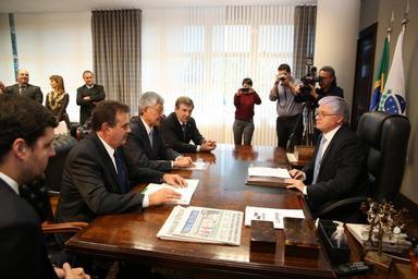 | Keywords: indoor Da esquerda pra direita; deputado Pedro Lupion (DEM), secretários Cézar Silvestri e Cássio Taniguchi, deputados Elio Ruch (DEM) e Valdir Rossoni (PSDB) Fotos: Nani Gois (Alep / crédito obrigatório) Da esquerda pra direita; deputado Pedro Lupion (DEM), secretários Cézar Silvestri e Cássio Taniguchi, deputados Elio Ruch (DEM) e Valdir Rossoni (PSDB) Fotos: Nani Gois (Alep / crédito obrigatório) | ||||