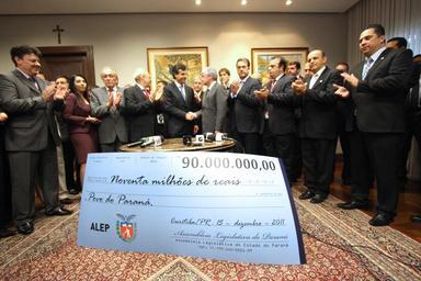 Keywords: devolução cheque simbólico chequesimbólico 90 milhões 90milhões economia alep legislativo paranaense legislativoparanaense nelson luersen nelsonluersen cantora mara lima cantoramaralima duílio genari duíliogenari ademar traiano ademartraiano beto richa betoricha douglas fabrício douglasfabrício valdir rossoni valdirrossoni plauto miró plautomiró paranhos reni pereira renipereira dr batista drbatista pedro lupion pedrolupion gilson de souza gilsondesouza indoor A Assembleia Legislativa devolveu ao Governo do Estado R$ 90 milhões, resultado das economias pelas medidas moralizadoras e saneadoras implantadas no primeiro ano de gestão da atual Mesa Executiva. O valor foi entregue ao governador Beto Richa (PSDB) no início da tarde desta quinta-feira (15), em ato simbólico realizado na Presidência do Poder Legislativo, na presença de diversos deputados, diretores, além de secretários de Estado. Leia mais: www.alep.pr.gov.br/imprensa/noticias/noticia/20847/assemb... Foto: Nani Gois/Alep (crédito obrigatório) A Assembleia Legislativa devolveu ao Governo do Estado R$ 90 milhões, resultado das economias pelas medidas moralizadoras e saneadoras implantadas no primeiro ano de gestão da atual Mesa Executiva. O valor foi entregue ao governador Beto Richa (PSDB) no início da tarde desta quinta-feira (15), em ato simbólico realizado na Presidência do Poder Legislativo, na presença de diversos deputados, diretores, além de secretários de Estado. Leia mais: www.alep.pr.gov.br/imprensa/noticias/noticia/20847/assemb... Foto: Nani Gois/Alep (crédito obrigatório)