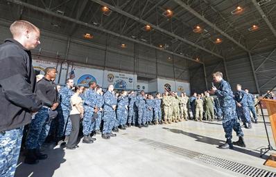 Keywords: winner alt 160121-N-GC965-365 NAVAL AIR STATION SIGONELLA, Sicily (Jan. 21, 2016) Adm. Mark Ferguson, Commander, U.S. Naval Forces Europe-Africa, speaks at an all-hands call during a scheduled visit to NAS Sigonella, Jan 21, 2016. U.S. Naval Forces Europe-Africa, headquartered in Naples, Italy, oversees joint and naval operations, often in concert with allied, joint, and interagency partners, in order to advance U.S. national interests, security and stability in Europe and Africa. (U.S. Navy photo by Mass Communication Specialist 2nd Class Ramon Go/Released) 160121-N-GC965-365 NAVAL AIR STATION SIGONELLA, Sicily (Jan. 21, 2016) Adm. Mark Ferguson, Commander, U.S. Naval Forces Europe-Africa, speaks at an all-hands call during a scheduled visit to NAS Sigonella, Jan 21, 2016. U.S. Naval Forces Europe-Africa, headquartered in Naples, Italy, oversees joint and naval operations, often in concert with allied, joint, and interagency partners, in order to advance U.S. national interests, security and stability in Europe and Africa. (U.S. Navy photo by Mass Communication Specialist 2nd Class Ramon Go/Released) |