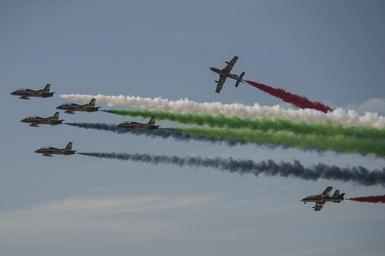 | Keywords: uscentcom usafcent usnavcent usmarcent u.s. marine corps usmarinecorps bahrain international airshow bahraininternationalairshow bahrain u.s. air force usairforce u.s. navy usnavy sakhir airbase sakhirairbase bh outdoor The United Arab Emirates Air Force Al Fursan demonstration team perform at the Bahrain International Airshow at Sakhir Airbase in Manama, Bahrain, Jan. 22, 2016. The Al Fursan planes are painted in black, gold, white, red and green colors and are equipped with smoke generators producing red, green, white and black smoke which are their national flag colors. (U.S. Air Force photo by Staff Sgt. Corey Hook/Released) The United Arab Emirates Air Force Al Fursan demonstration team perform at the Bahrain International Airshow at Sakhir Airbase in Manama, Bahrain, Jan. 22, 2016. The Al Fursan planes are painted in black, gold, white, red and green colors and are equipped with smoke generators producing red, green, white and black smoke which are their national flag colors. (U.S. Air Force photo by Staff Sgt. Corey Hook/Released)  |