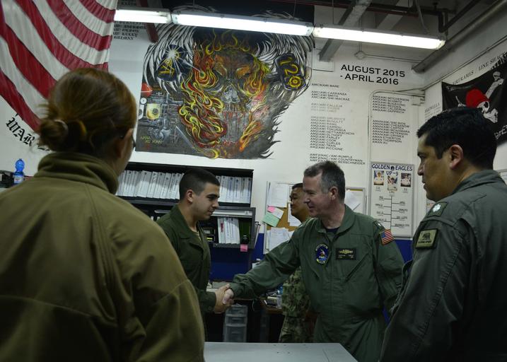 Keywords: second ctf 67 ctf67 160303-N-MV308-005 SIGONELLA, Sicily (March 3, 2016) Rear Adm. Matt Zirkle, commander, Submarines - NATO, meets with Sailors assigned to Patrol Squadron (VP) 9 during a visit to Naval Air Station Sigonella on March 3, 2016. Zirkle flew on VP-9’s P-3C Orion maritime patrol aircraft during NATO’s anti-submarine warfare exercise Dynamic Manta 2016 (DYMA 16). DYMA 16 involved ships, submarines, aircraft and personnel from eight Allied nations converging on the central Mediterranean Sea for anti-submarine warfare and anti-surface warfare training. (U.S. Navy photo by Mass Communication Specialist 3rd Class Amber L. Porter/Released) 160303-N-MV308-005 SIGONELLA, Sicily (March 3, 2016) Rear Adm. Matt Zirkle, commander, Submarines - NATO, meets with Sailors assigned to Patrol Squadron (VP) 9 during a visit to Naval Air Station Sigonella on March 3, 2016. Zirkle flew on VP-9’s P-3C Orion maritime patrol aircraft during NATO’s anti-submarine warfare exercise Dynamic Manta 2016 (DYMA 16). DYMA 16 involved ships, submarines, aircraft and personnel from eight Allied nations converging on the central Mediterranean Sea for anti-submarine warfare and anti-surface warfare training. (U.S. Navy photo by Mass Communication Specialist 3rd Class Amber L. Porter/Released) |