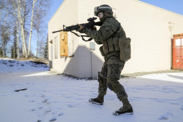 | Keywords: 4th law enforcement battalion 4thlawenforcementbattalion mout military operation on urban terrain militaryoperationonurbanterrain military police militarypolice joint base elmendorf-richardson jointbaseelmendorfrichardson alaska usa us outdoor Marines assigned to Detachment Military Police Company D, 4th Law Enforcement Battalion conduct military operations on urban terrain (MOUT) training at Baumeister City MOUT complex at Joint Base Elmendorf-Richardson, Alaska, March 6, 2016. The training prepared the Marines for their upcoming deployment to Serbia where they will serve as military police advisors. (U.S. Air Force photos/Alejandro Peña) Marines assigned to Detachment Military Police Company D, 4th Law Enforcement Battalion conduct military operations on urban terrain (MOUT) training at Baumeister City MOUT complex at Joint Base Elmendorf-Richardson, Alaska, March 6, 2016. The training prepared the Marines for their upcoming deployment to Serbia where they will serve as military police advisors. (U.S. Air Force photos/Alejandro Peña) |