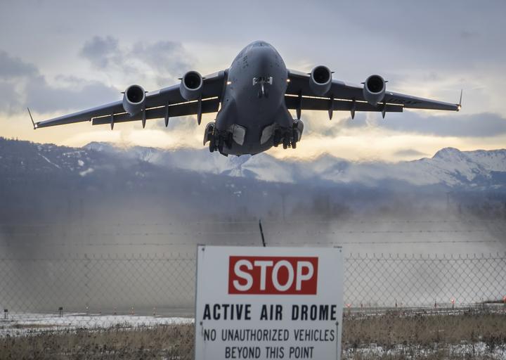 Keywords: c-17; globemaster iii; usaf; u.s. air force; 11af; 11th air forc c17globemasteriiiusafusairforce11af11thairforc joint base elmendorf-richardson jointbaseelmendorfrichardson alaska usa c-17; globemaster iii; usaf; u.s. air force; 11af; 11th air force; alaska; joint base elmendorf-richardson; jber; bryant army airfield c17globemasteriiiusafusairforce11af11thairforcealaskajointbaseelmendorfrichardsonjberbryantarmyairfield outdoor airplane aircraft vehicle A C-17 Globemaster III aircraft of the 517th Airlift Squadron takes off from Bryant Army Airfield on Joint Base Elmendorf-Richardson, Alaska, Monday, March 7, 2016, while practicing landing and taking off from a short runway. The event marked the first time a C-17 has taken off from the airfield since its construction in 1958, when the runway was built by the U.S. Army on then-separate Ft. Richardson to support Soldiers in remote areas of Alaska. (U.S. Air Force photo/Justin Connaher) A C-17 Globemaster III aircraft of the 517th Airlift Squadron takes off from Bryant Army Airfield on Joint Base Elmendorf-Richardson, Alaska, Monday, March 7, 2016, while practicing landing and taking off from a short runway. The event marked the first time a C-17 has taken off from the airfield since its construction in 1958, when the runway was built by the U.S. Army on then-separate Ft. Richardson to support Soldiers in remote areas of Alaska. (U.S. Air Force photo/Justin Connaher) |