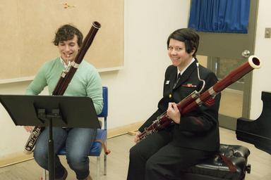Keywords: indoor AMHERST, MASS (Mar. 7, 2016) Musician First Class Jennifer Stokes coaches a student during a masterclass at UMass, Amherst Monday morning; part of the band's mission to provide outreach and education. The U.S. Navy Band is on a 25-day tour of the northeastern United States. (U.S. Navy photo by Chief Musician Melissa Bishop/Released) AMHERST, MASS (Mar. 7, 2016) Musician First Class Jennifer Stokes coaches a student during a masterclass at UMass, Amherst Monday morning; part of the band's mission to provide outreach and education. The U.S. Navy Band is on a 25-day tour of the northeastern United States. (U.S. Navy photo by Chief Musician Melissa Bishop/Released) |