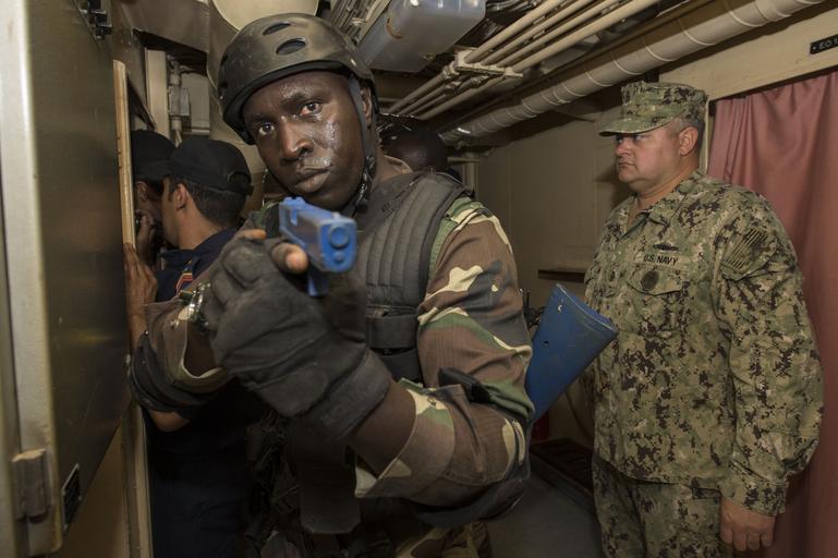 Keywords: u.s. 6th fleet us6thfleet africa partnership station africapartnershipstation obangame express obangameexpress saharan express saharanexpress obse dakar senegal dakarsenegal dakar senegal people 160315-N-ZE250-060 DAKAR, Senegal (March15, 2016) U.S. Navy and Senegalese navy sailors conduct visit, board, search and seizure training aboard the Senegalese naval vessel PHM Njambuur during Obangame/Saharan Express 2016 (OESE16) in Dakar, Senegal March 15, 2016. OESE16, one of three African regional express series exercises facilitated by U.S. Naval Forces Europe-Africa/U.S. 6th Fleet, seeks to increase regional cooperation, maritime domain awareness, information sharing practices and improve interoperability among participating forces in order to enhance maritime security and regional economic stability. (U.S. Navy photo by Mass Communication Specialist 3rd Class Weston Jones/Released) 160315-N-ZE250-060 DAKAR, Senegal (March15, 2016) U.S. Navy and Senegalese navy sailors conduct visit, board, search and seizure training aboard the Senegalese naval vessel PHM Njambuur during Obangame/Saharan Express 2016 (OESE16) in Dakar, Senegal March 15, 2016. OESE16, one of three African regional express series exercises facilitated by U.S. Naval Forces Europe-Africa/U.S. 6th Fleet, seeks to increase regional cooperation, maritime domain awareness, information sharing practices and improve interoperability among participating forces in order to enhance maritime security and regional economic stability. (U.S. Navy photo by Mass Communication Specialist 3rd Class Weston Jones/Released) |