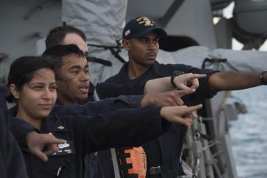 Keywords: u.s. navy usnavy sailor uss porter (ddg 78) ussporterddg78 meditteranean sea meditteraneansea man-overboard manoverboard people groupshot 160325-N-FQ994-332 MEDITERRANEAN SEA (March 25, 2016) Sailors aboard USS Porter (DDG 78) point to the location of a simulated man overboard March 25, 2016. Porter, an Arleigh Burke-class guided-missile destroyer, forward-deployed to Rota, Spain, is conducting a routine patrol in the U.S. 6th Fleet area of operations in support of U.S. national security interests in Europe. (U.S. Navy Photo by Mass Communication Specialist 3rd Class Robert S. Price/Released) 160325-N-FQ994-332 MEDITERRANEAN SEA (March 25, 2016) Sailors aboard USS Porter (DDG 78) point to the location of a simulated man overboard March 25, 2016. Porter, an Arleigh Burke-class guided-missile destroyer, forward-deployed to Rota, Spain, is conducting a routine patrol in the U.S. 6th Fleet area of operations in support of U.S. national security interests in Europe. (U.S. Navy Photo by Mass Communication Specialist 3rd Class Robert S. Price/Released) |