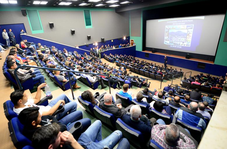 Keywords: nas sigonella nassigonella nas sigonella, sicily nassigonellasicily ita auditorium people crowd indoor 160331-N-GC965-090 NAS SIGONELLA, Sicily (March 31, 2016) Commander, U.S. 6th Fleet, Vice Adm. James Foggo III, addresses service members and civilian employees during an all-hands call aboard Naval Air Station Sigonella, March 31, 2016. U.S. 6th Fleet, headquartered in Naples, Italy, conducts the full spectrum of joint and naval operations, often in concert with allied, joint, and interagency partners, in order to advance U.S. national interests and security and stability in Europe and Africa. (U.S. Navy photo by Mass Communication Specialist 2nd Class Ramon Go/Released) 160331-N-GC965-090 NAS SIGONELLA, Sicily (March 31, 2016) Commander, U.S. 6th Fleet, Vice Adm. James Foggo III, addresses service members and civilian employees during an all-hands call aboard Naval Air Station Sigonella, March 31, 2016. U.S. 6th Fleet, headquartered in Naples, Italy, conducts the full spectrum of joint and naval operations, often in concert with allied, joint, and interagency partners, in order to advance U.S. national interests and security and stability in Europe and Africa. (U.S. Navy photo by Mass Communication Specialist 2nd Class Ramon Go/Released) |